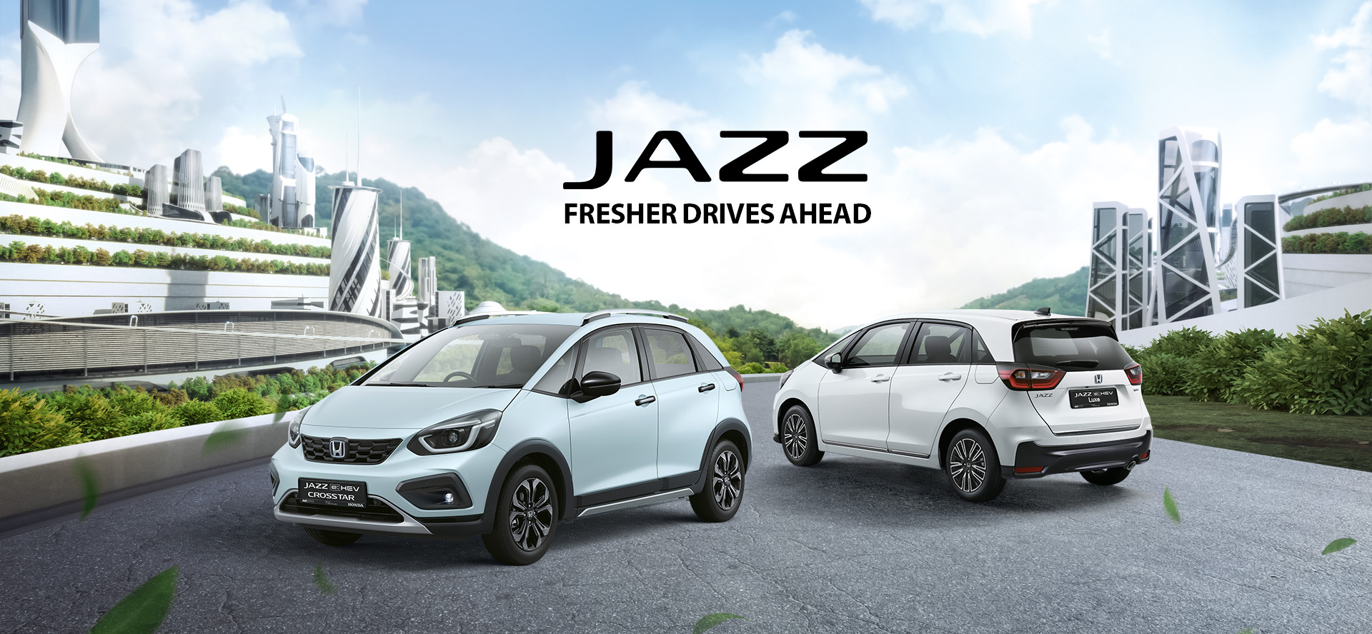 The New Jazz is here to prove compact can be comfortable. The New Jazz range has two new eco-friendly additions. While the Luxe boasts a dynamic and distinctively modern look, the Crosstar is definitely for drivers with a sportier lifestyle. Both of these handsome hatchbacks feature Honda's e:HEV technology - supporting real driving performance, while achieving amazing fuel economy and low emissions.